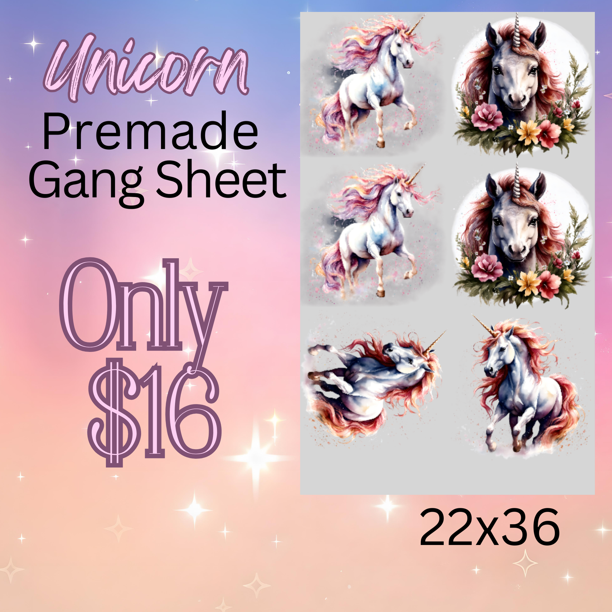 22x36 Unicorn Premade DTF