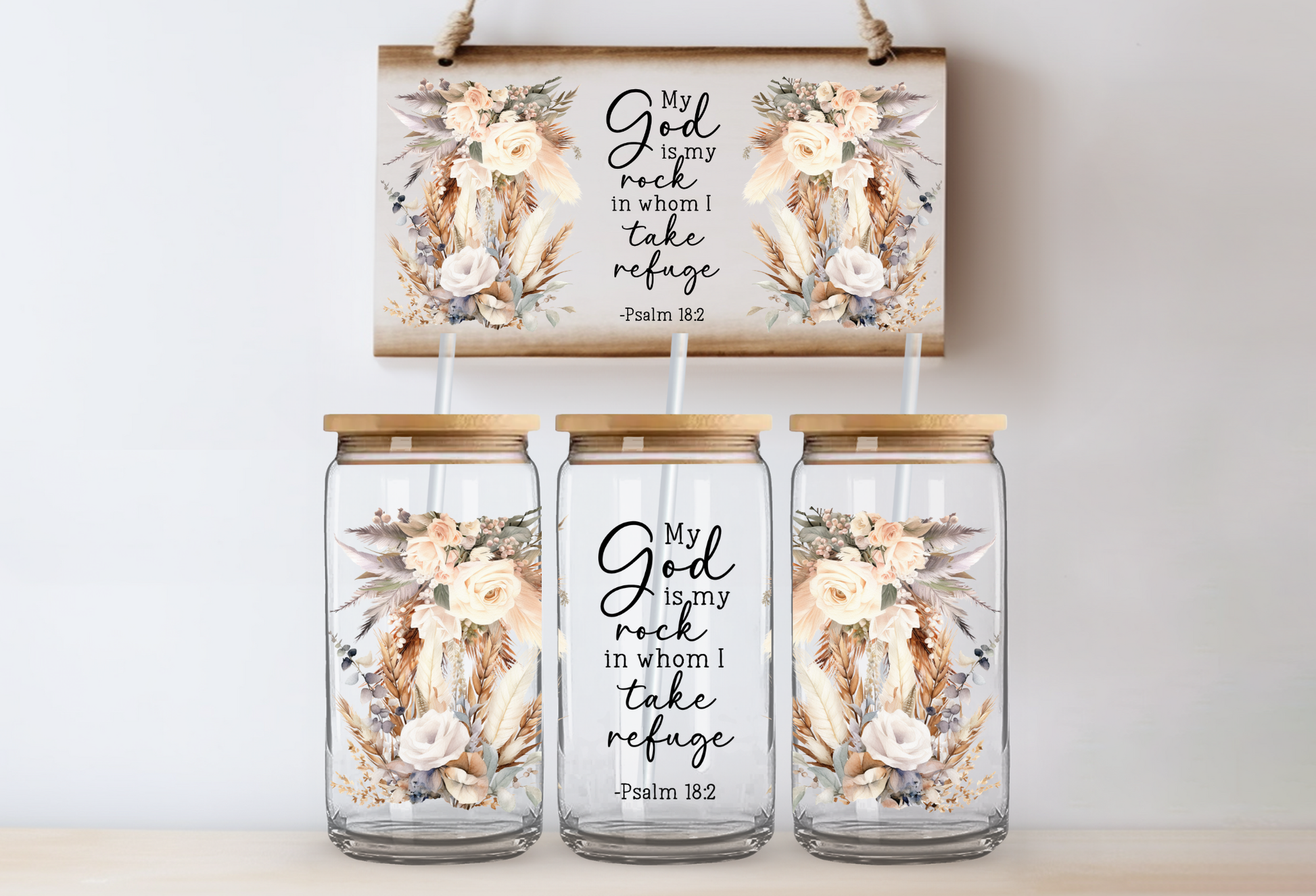 UVDTF 16oz CUP WRAP -God My Rock Neutral Bouquet