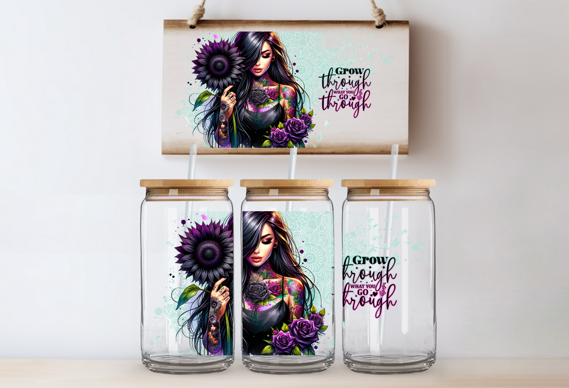UVDTF 16oz CUP WRAP -Grow Through What You Go Through
